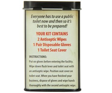 Always be prepared for even the most hideous of unhygienic places with this public toilet survival kit! It includes some handy items to keep you safe and sanitary wherever you happen to be. Each kit contains: disposable gloves, antiseptic wipes and a toilet seat cover.