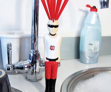 Add a touch of badass to your everyday chore and clean your dishes with this punk washing up brush! His Mohican hair is made up of strong bristles to scrub off stubborn food and he'll look awesome displayed by your sink when you're not using him.