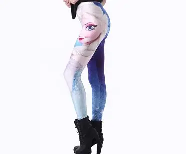 Show off your love for the awesome Disney movie "Frozen" and wear these amazing Queen Elsa leggings! They feature a stunning winter blue design all over and the beautiful Elsa on one side of the leggings. Frozen fans will love wearing these casually or you could wear them as an adult costume for a party.