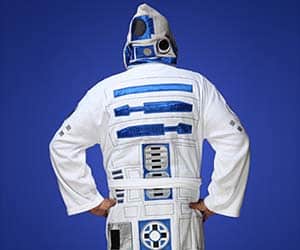 Are you a star wars fan? Then this r2-d2 bathrobe is an excellent choice! Put this robe on and feel the force be with you all while keeping yourself warm through the dark times! 100% cotton and machine washable.