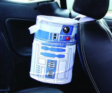 Keeping your spacecraft clean and tidy is much easier when you have one of these R2-D2 car bins! It secures to the back of your seat with Velcro straps and can be folded flat for storage. A great solution for messy travelers!