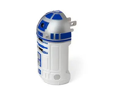 Juice up your device with some droid power and use this R2-D2 wall charger! Features two USB ports and it will light up when you plug into the wall. A great charger for Star Wars fans!