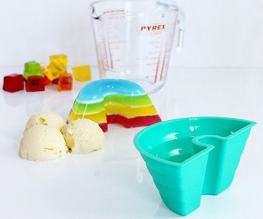 What could be more fun than a colorful dessert made using this rainbow jello mold! Just use four different colors of jelly to create this fun effect and then team it with creamy, whipped ice cream for the perfect sky scene on your plate! YUM!
