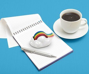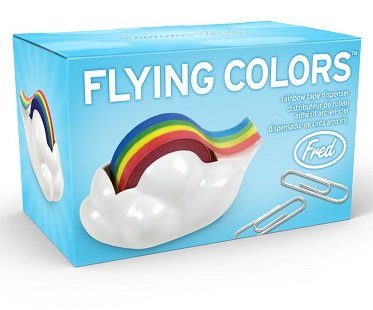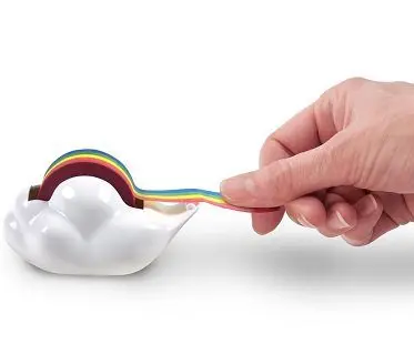 Add some color to your dull and boring office desk with this rainbow tape dispenser! It will add a splash of color to various items that need sticking together and the roll sits inside a cloud shaped dispenser. It's both fun and functional!