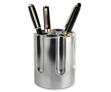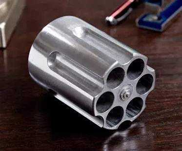 Add a touch of 007 style to your home or work office with this revolver chamber pen holder! Lock and load your pens while keeping your workspace clutter free. Holds up to 6 pens and features a worn look just like you'd see on a real firearm.