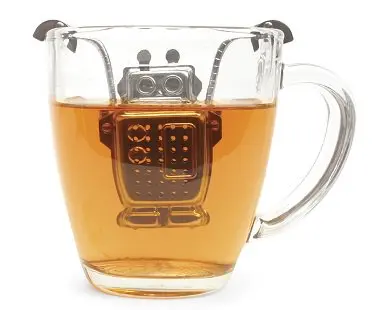 The robot tea infuser is a must-have for tea lovers! This little guy will brew your favorite loose tea to perfection. Features adjustable arms so you can suspend it over your mug of choice and Includes a resting tray for when you have finished steeping.