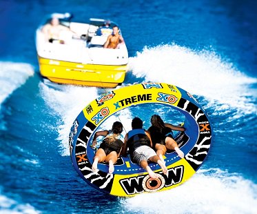 Experience water sports like never before with this awesome rocking towable! It has enough room for for up to three people and its oval design means you will travel at thrilling high speeds as it rocks and slides on the water.