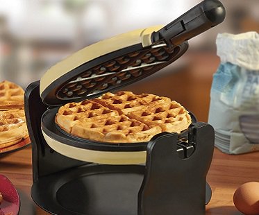 Go all out for a full American style breakfast at home with this awesome rotary waffle maker! It's easy to use and you'll have perfectly cooked waffles in as little as five minutes. The rotating function allows for even baking and browning. YUM!