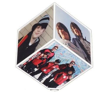 Display photos of your loved ones in unique style with this rotating photo cube! It holds 6 photos and 'magically' rotates! All it requires is 1 AA battery so there's no messy wires. Awesome!