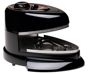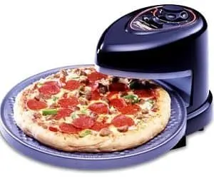 Now there's a faster and even easier way to bake frozen or homemade pizzas using this rotating tray pizza oven! It has top and bottom heating elements so that food is cooked from both sides. You can even use it for other food such as chicken wings or even cookies!
