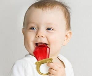 Give your baby some bling that will keep them soothed and calm with this ruby teething ring! Recommended for ages 3 and up. This precious jewel will come in handy when your little ones are suffering with gum soreness.