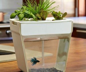 Now you can grow herbs and keep pet fish all in one unit with this self cleaning fish tank! All you have to do is feed the fish, the rest is up to science! The waste from the fish provides nutrients for the plants, and the plants clean the water which is then circulated back into the tank. Awesome!