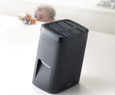 Keep your knives in top condition while protecting your children from dangerous accidents with this self locking knife block. Keeping knives in drawers can often damage them, not to mention the risk of cutting yourself when taking them out. When you place your knives in the cleverly designed block, they will secure into place by the cam-lock mechanism. To release a knife, simply press firmly the release button on the side. Perfect for homes with little ones.