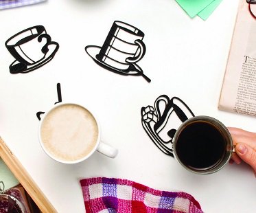 Artists and drawing fans will simply love the design of these fun sketch coasters! They'll look awesome displayed on your coffee table and they'll protect surfaces from spills and stains. Made from heat-resistant silicone material.