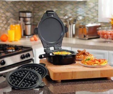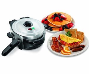 Breakfast just got easier and tastier with this skillet and waffle maker! It features interchangeable, non-stick grids that heat up quickly. Use the skillet for eggs, bacon, omelets and toast then switch and make delicious waffles.