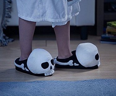 Keep those bony feet of yours warm and cozy this winter with a pair of these skull slippers! Available in one size that fits most and features no-slip dots on the base of each slipper.