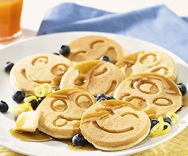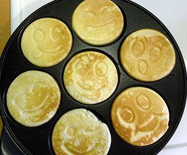 Add some fun to breakfast time with this smiley face pancake pan! It's simple to use and creates 7 different faces. Features a non-stick coating for easy cleaning. Your kids will love eating their cute and tasty pancakes!