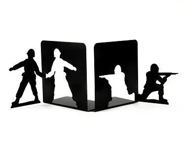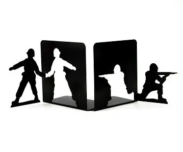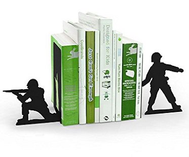 Keep your best books or DVD's safe and protected with these armed soldier bookends! They're ready and waiting to take down any potential thieves! Made from sturdy metal to keep your books securely in place.