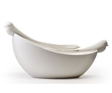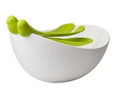 Spruce up your salad and serve it in this clever sparrow salad bowl with serving spoons! The handles of the spoons form 2 birds which sit perched on the edge of the bowl. Also great for noodle and pasta dishes.