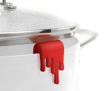 Prevent over boiling of your saucepans with this fun and quirky splash lid holder! It will prop your lid open allowing the steam to escape and it can also double up as a spoon rest. Pack includes 2 red rubber holders.