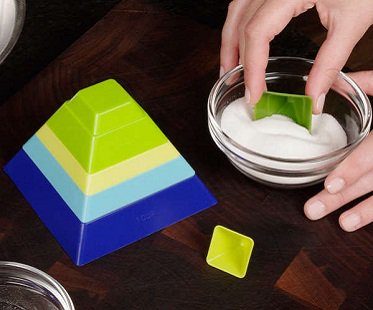 These stackable pyramid measuring cups are both practical and space-saving thanks to their clever design! There are six different sizes ranging from 1 teaspoon up to 1 cup and they all stack neatly on top of each other.