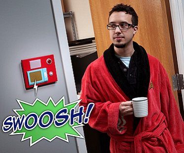 Feel like you're on the Starship Enterprise every time you walk thorough a door with this awesome Star Trek door chime! It's motion-sensored and will make the famous automatic 'swooshing' sounds every time you open a door in your home. A great gift for trekkies.