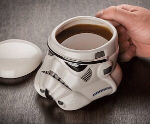 May the force wake you up in the mornings with a large caffeine fix drunk from this Stormtrooper helmet mug! It's a must-have for any Star Wars fans and is perfect to use at home or in the office. Features hand-painted detail.