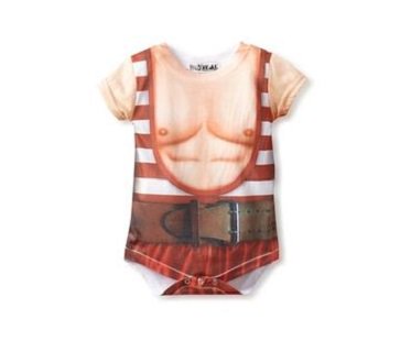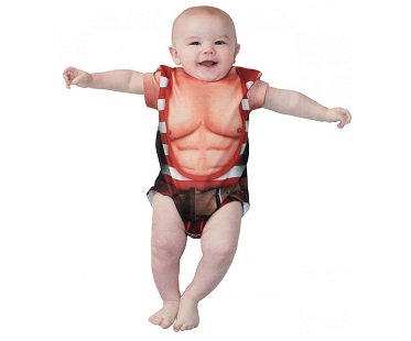 If your little one can do extraordinary things then you should dress them in this super cute strongman baby onesie! Features a fun photo printed image of muscles, a stripey suit and a belt.