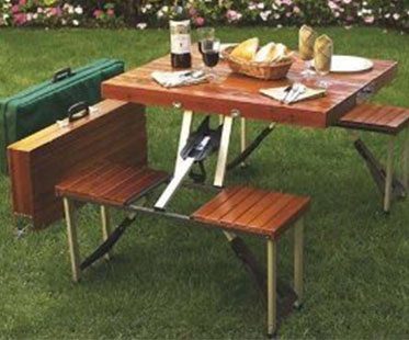Now you can set up a picnic in style with this portable picnic table, packs neatly away inside the suitcase and only weighs 22lbs. No more eating on the floor with the bugs!