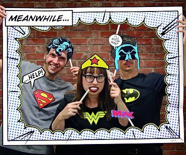 This superhero photobooth is a great gift for the comic nerd in your life! Featuring 24 props and captions, you and your friends can have endless fun creating the perfect display picture for your Facebook profile!