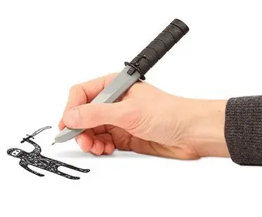 Unleash your ninja skills on your next homework assignment with this awesome sword-shaped pen! It will play a "SHHINNG" sound when you press the button to release the pen tip and when you retract it.