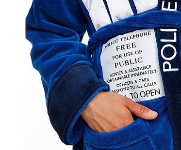 When you've had a long, hard day, there's nothing more comforting than slipping into your very own spacecraft time machine! Doctor Who fans will love wearing this Tardis fleece robe while they enjoy watching their favorite episodes of the hit TV series. Warm and cozy and comes in one size.