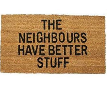 Greet your guests with light humor at the door with this hilarious doormat! A fun and practical mat for shoes that reads “the neighbors have netter stuff”!