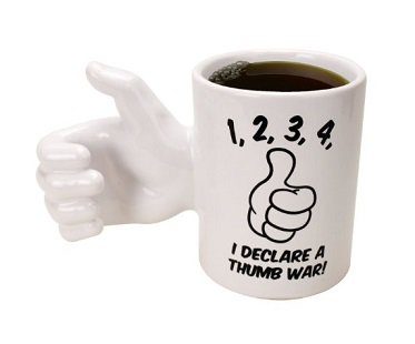 You'll have the best mug in the office when you enjoy your coffee from this awesome thumb war mug! When all your colleagues see you sipping from it, it will give you an easy excuse to challenge them to a quick game while on your break. Epic.