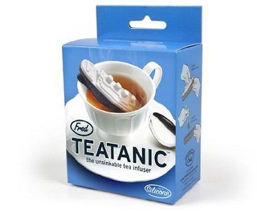 Re-enact the famous scene from the classic movie right inside your tea cup with this Titanic tea infuser! Simply fill it up with your favorite loose tea leaves and let it set sail in a cup of hot water. Once you've reached the desired steep, rescue the boat from your cup and enjoy your delicious drink of tea.