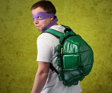 Join the gang and fight crime with this TMNT shell backpack! Features multiple inside pockets for all of your belongings and comes with 4 colored felt masks to represent each turtle. Who will you be today? You decide!