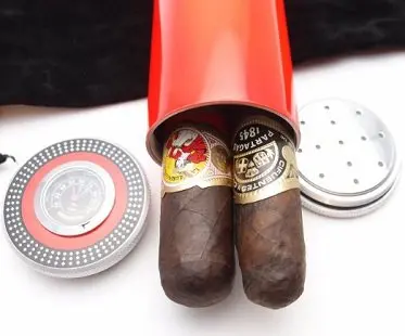 Enjoy your favorite brand of Cuban when you hit the road and get this travel cigar humidor! It has enough room for 3-4 cigars and there's a built-in humidifier and hygrometer to ensure full freshness is preserved.