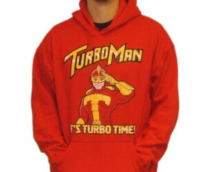 It's Turbo Time!! Keep warm this holiday season while you watch your favorite Christmas movies wearing this awesome Turbo Man hoodie! It's fun design has been inspired by the movie 'Jingle All the Way' and it's available in a range of sizes to suit every superhero.