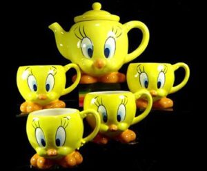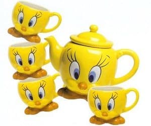This adorable Tweety Bird tea set is a great collectors item! Includes x1 teapot and x4 teacups. Made from hand painted ceramic and finished with a gloss to make it shine.