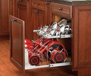 If you like your cupboards to be neat and tidy then you need this two-tier cookware organizer! Instead of trying to balance everything on top of one another, you can easily slot things into secure, separate compartments. The top tier holds lids and the bottom tier features adjustable dividers for your pots and pans.