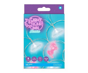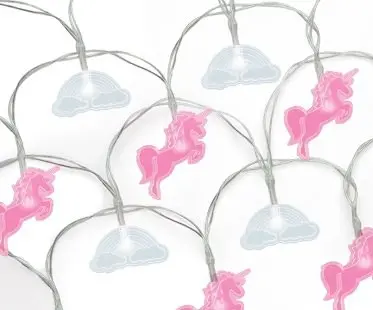Transform your bedroom from boring to magical in an instance with these unicorn string lights! They're battery-operated so you can hang them wherever you like and their fun design features unicorns and clouds in the colors of pink and blue.