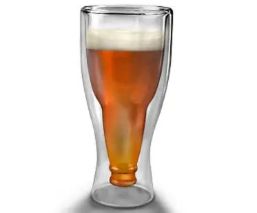 Enjoy a refreshing cold one from this upside down beer bottle glass! You can enjoy the greatness of drinking from the bottle without the wet condensation drips all over your hand thanks to the double-walled glass. A fun gift idea for beer lovers.