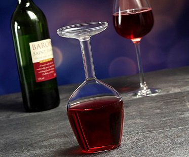 Don't worry, you haven't had too much to drink (yet). That really is an upside down wine glass! Use them for you guests at dinner parties and watch the confused look on their faces while you serve their drinks! Also makes a great gift idea.