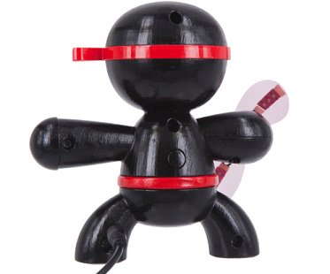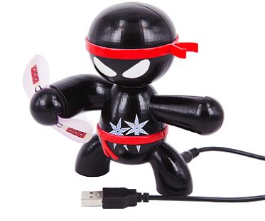 Nunchucks at the ready! This USB ninja fan is ready and waiting to conquer the heat for you! He's perfect to use at your desk to keep you cool while you work. Simply plug the USB cable into a power source so you can enjoy a cool breeze.