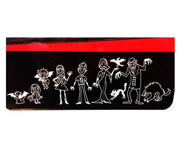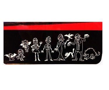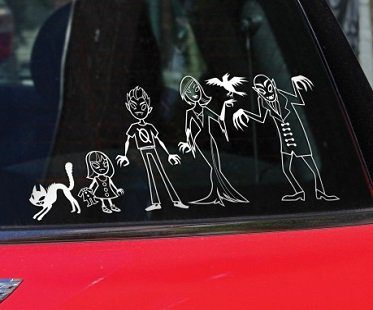 Add some creepy fun to the back of your car with these vampire family car decals! Their design is a blood-tingling twist on the traditional style of family decals and you'll get nine different stickers to make up your own family. There's: 2 adults, 4 children, 1 baby, 1 cat and 1 dog.