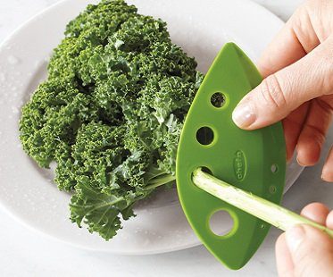 Remove those woody, unwanted stems in a flash with this vegetable and herb stem stripper! It's quick and easy to use- just insert the stem through one of the holes and pull. Perfect for kale, oregano, rosemary and more! A must-have gadget for every kitchen.