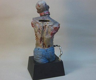 Now you can have your very own chained walker just like Michonne's with this Walking Dead zombie money bank! Standing at 8 inches tall, this zombie is sure to ward off potential money grabbing thieves just from its scary looks alone! Great for fans of the show.