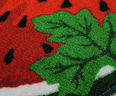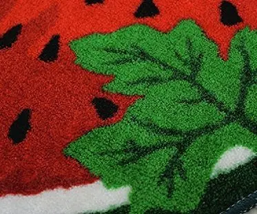 This fun and functional watermelon mat will certainly brighten up a dull room in your home! Its bold design will add a big splash of color to your bathroom, bedroom or living room. Features a non-slip, latex backing to keep it in place.