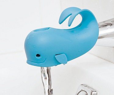 Brighten up the tub while protecting your baby from from the hard tap during bath time with this whale faucet cover! It features an adjustable fin that secures onto the spout and there's a blowhole to allow for easy access to the shower converter. Adds fun to bath time!