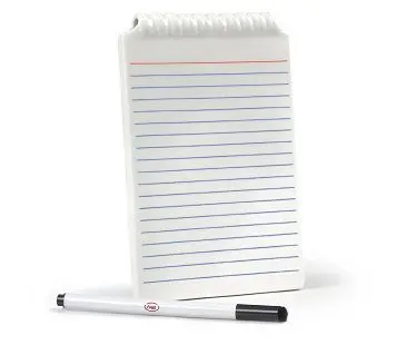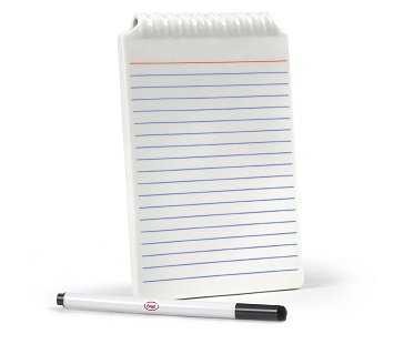 Save the environment by not wasting paper and use this whiteboard notepad instead! You can write reminders and lists for yourself or your family and then simply wipe them off without even turning a page! Includes a marker pen which can be stored in the spiral binding at the top.